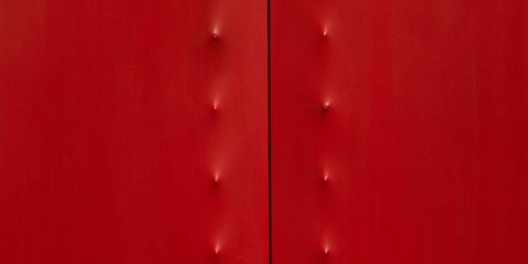 Dittico Rosso qu’Enrico Castellani réalise en 1963 est une oeuvre qui prend ses distances par rapport au geste de peindre en tant que tel. Castellani substitue l’ajout de clous au dos de la toile à la touche picturale traditionnellement apportée par la main du peintre. Ces éléments perturbateurs renforcés par la puissance du monochrome donnent naissance à une oeuvre rythmée par les creux et les bosses sur lesquels glissent la lumière et le regard.