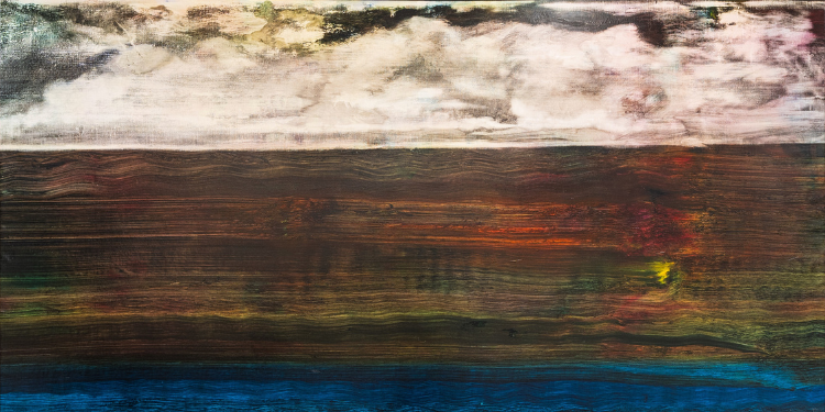 Aux portraits, longtemps centraux dans l’œuvre de Johan Van Mullem, succèdent désormais des horizons vibrants, traversés de verts naissants, de bleus éthérés et d’ocres lumineux. Réalisées à partir d’encres de gravure et d’imprimerie patiemment superposées, les œuvres déploient une matière stratifiée d’où émane une lumière intérieure. Entre sédimentation et effacement, elles invitent le regard à une expérience méditative, où se mêlent souffle des éléments, densité atmosphérique et réminiscences figuratives.
