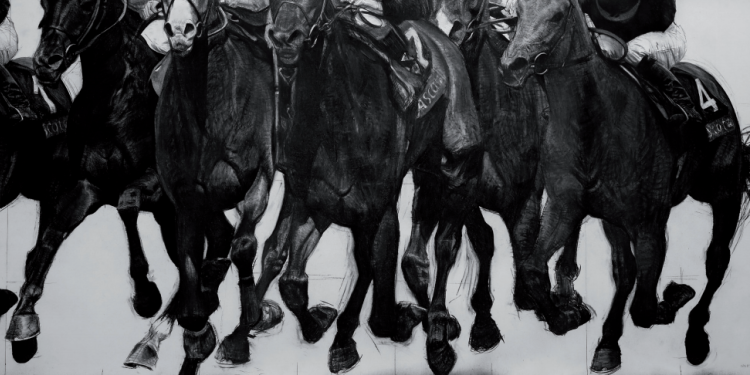 L’exposition réunit plusieurs axes essentiels de sa pratique : les grandes compositions équestres des Chevaux de l’Apocalypse, la figure du Cheval à la barre, ainsi que le paysage étiré du Chant de la Terre. Ces œuvres témoignent de l’importance du cheval dans la recherche de Joël Person, non comme motif narratif, mais comme point de tension entre puissance, vulnérabilité, liberté et contrainte. L’artiste privilégie le cadrage, la proximité du trait et la physicalité du geste pour interroger ce qui, dans l’animal, résonne avec notre propre rapport au monde.
