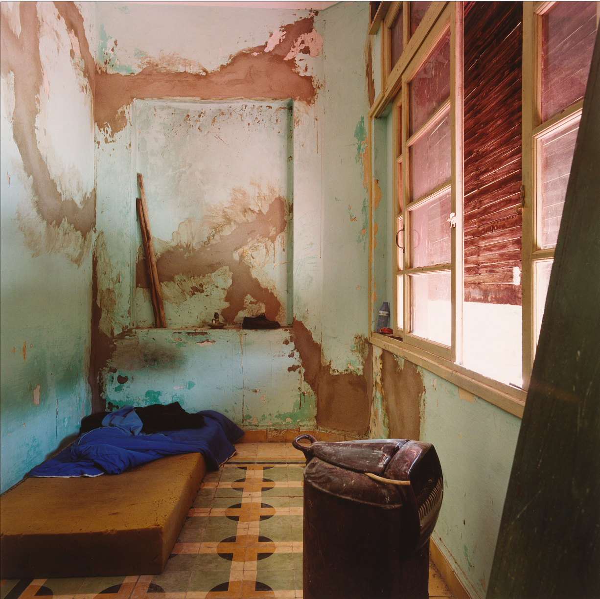 Le photographe immortalise les objets du quotidien, les détails insignifiants qui viennent combler ces intérieurs qu’il qualifie de « simples » : ici un miroir, là une casserole, plus loin des sandales ou quelques bibelots apposés sur une étagère laissent entrevoir les marques d’un mode de vie temporaire.